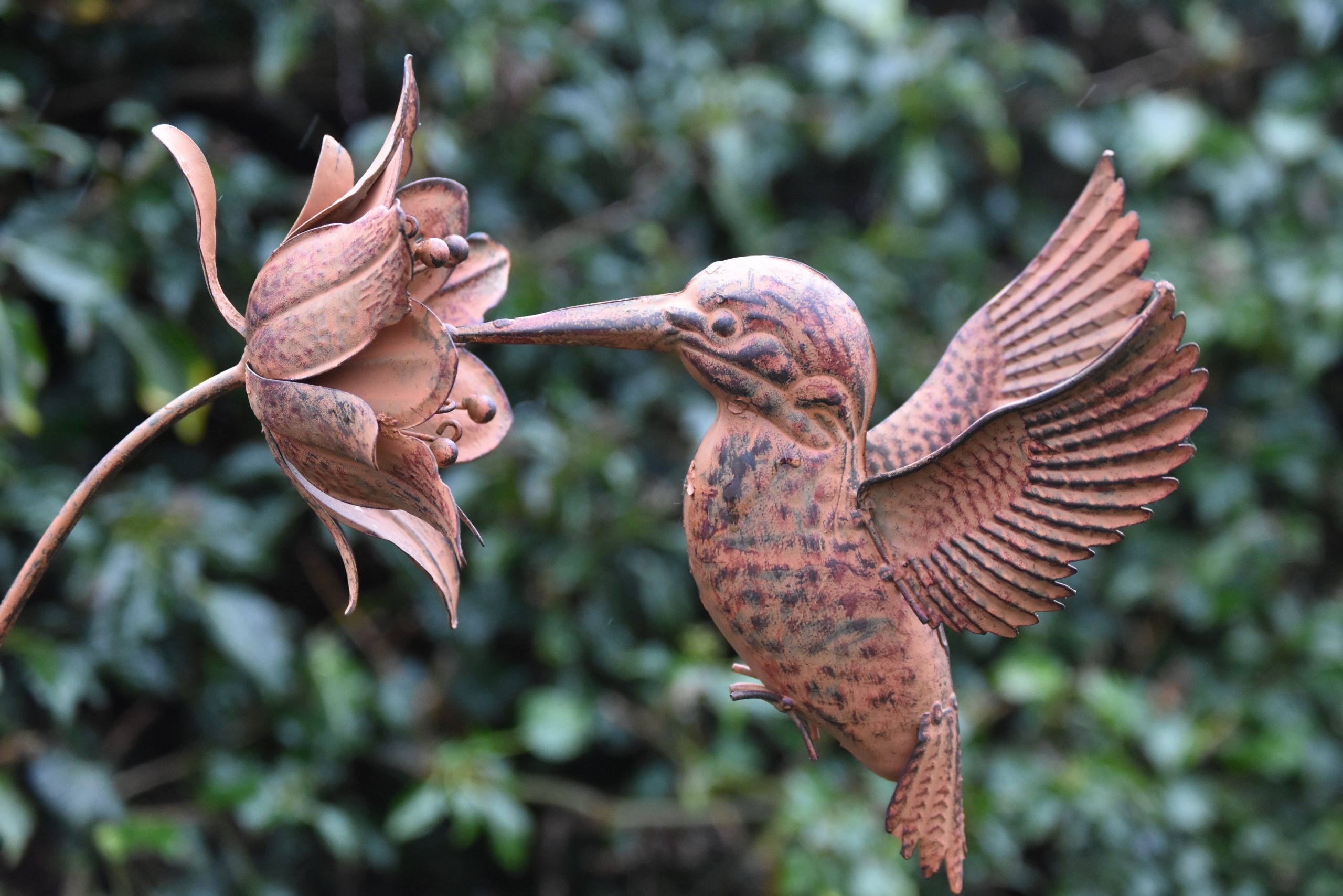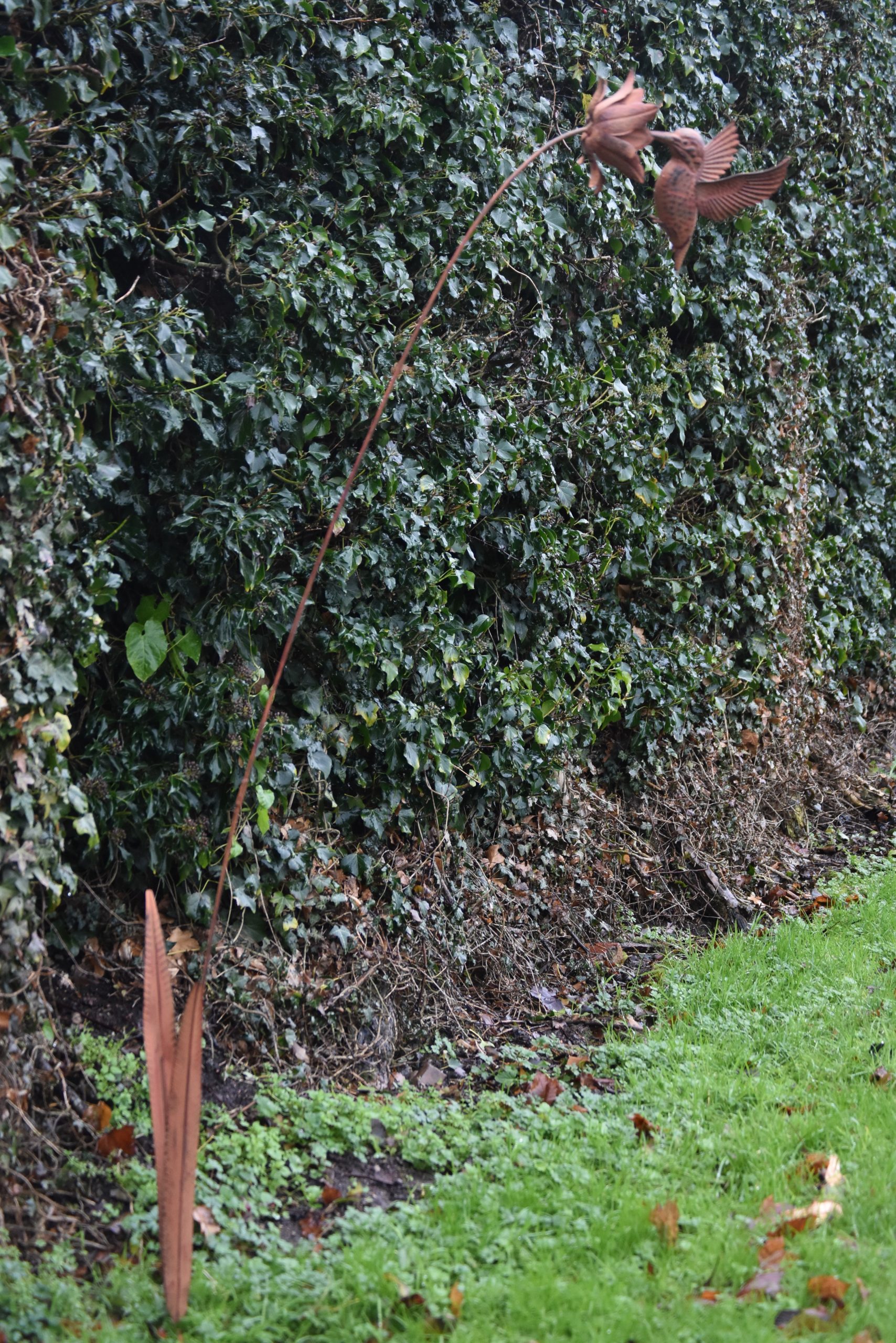6ft 4 inches tall this Beautiful Hummingbird waves around in the wind The end has a stake that goes into the ground