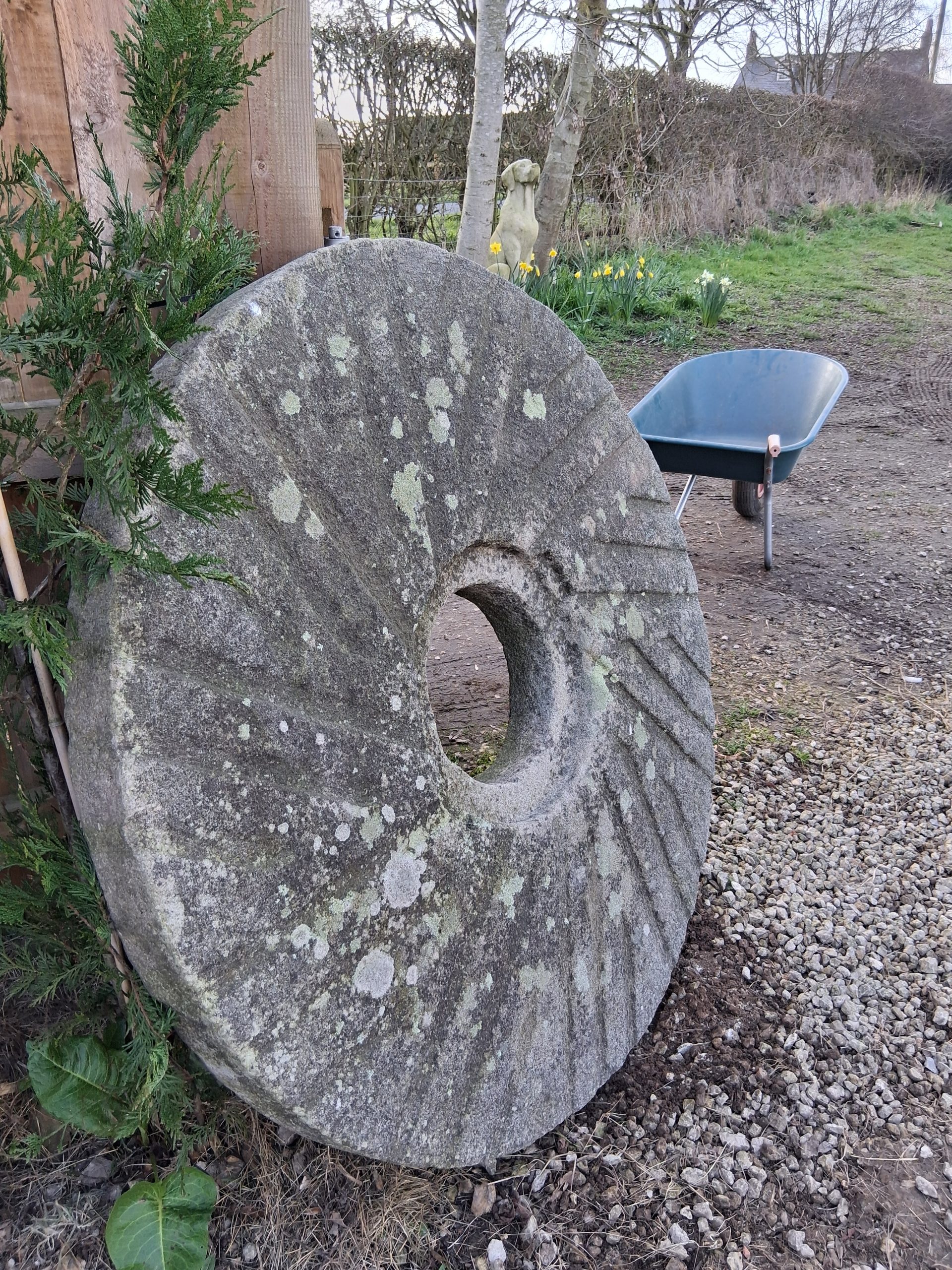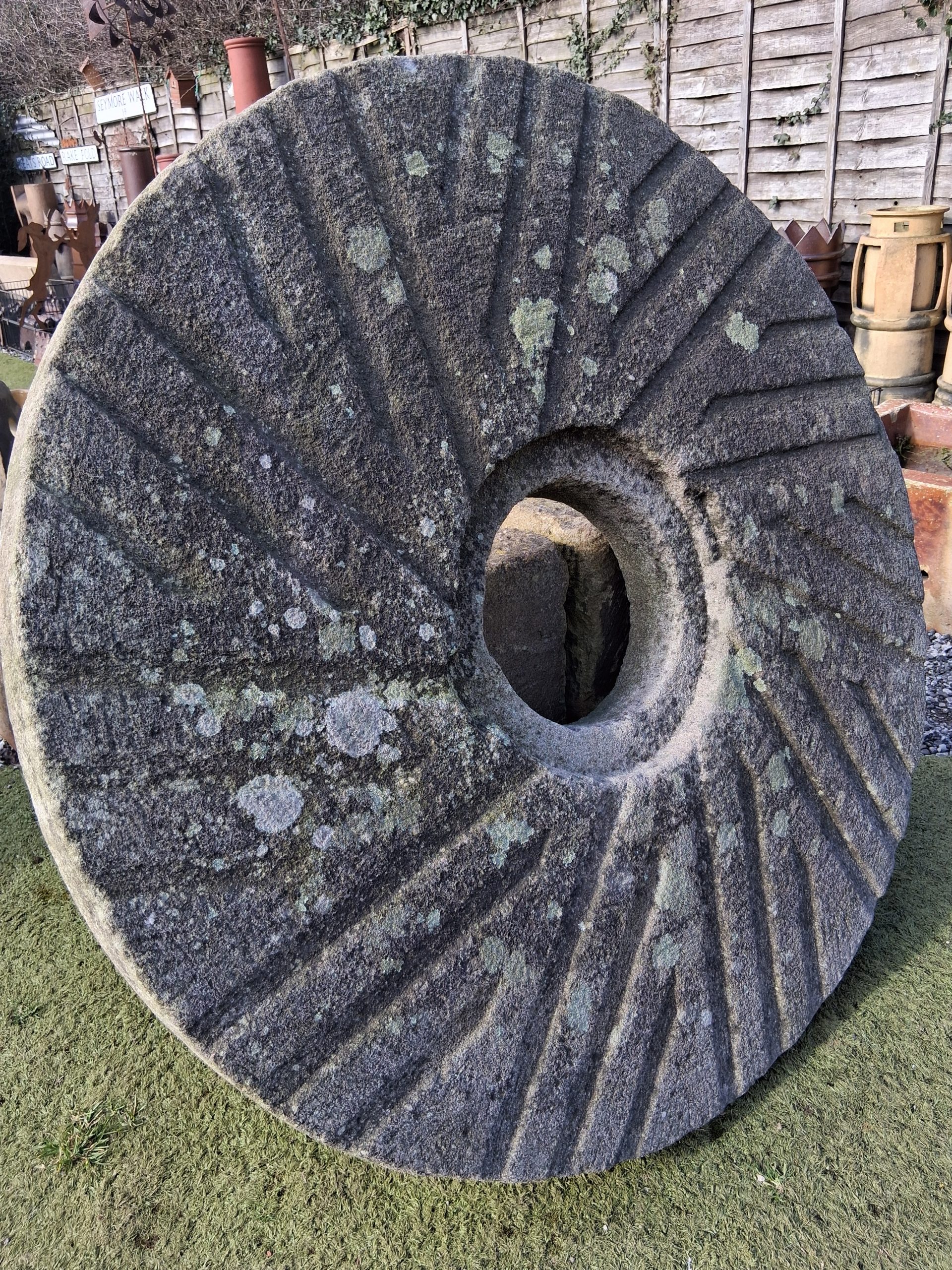 Ancient Stone Mill Wheel Diameter 48 inches 4ft and 4 inches wide A beauty indeed